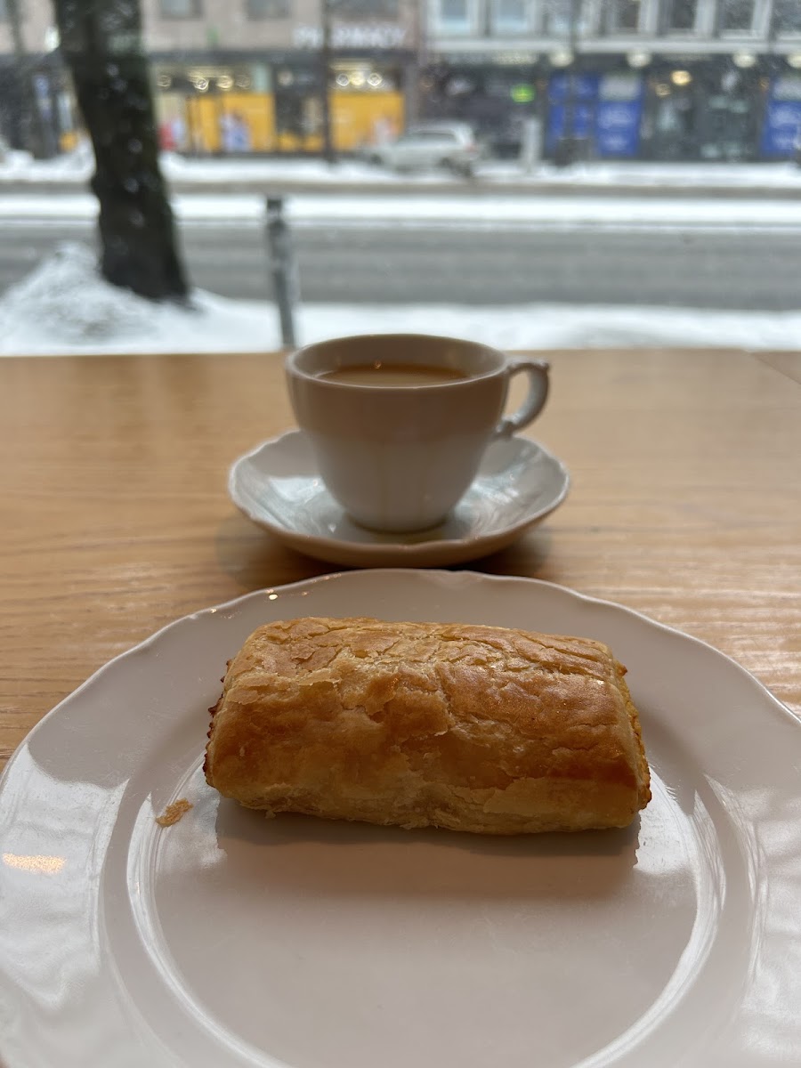 Hyvät kaffit ja leivonnaiset mutta itse kahvila on vähän karu.